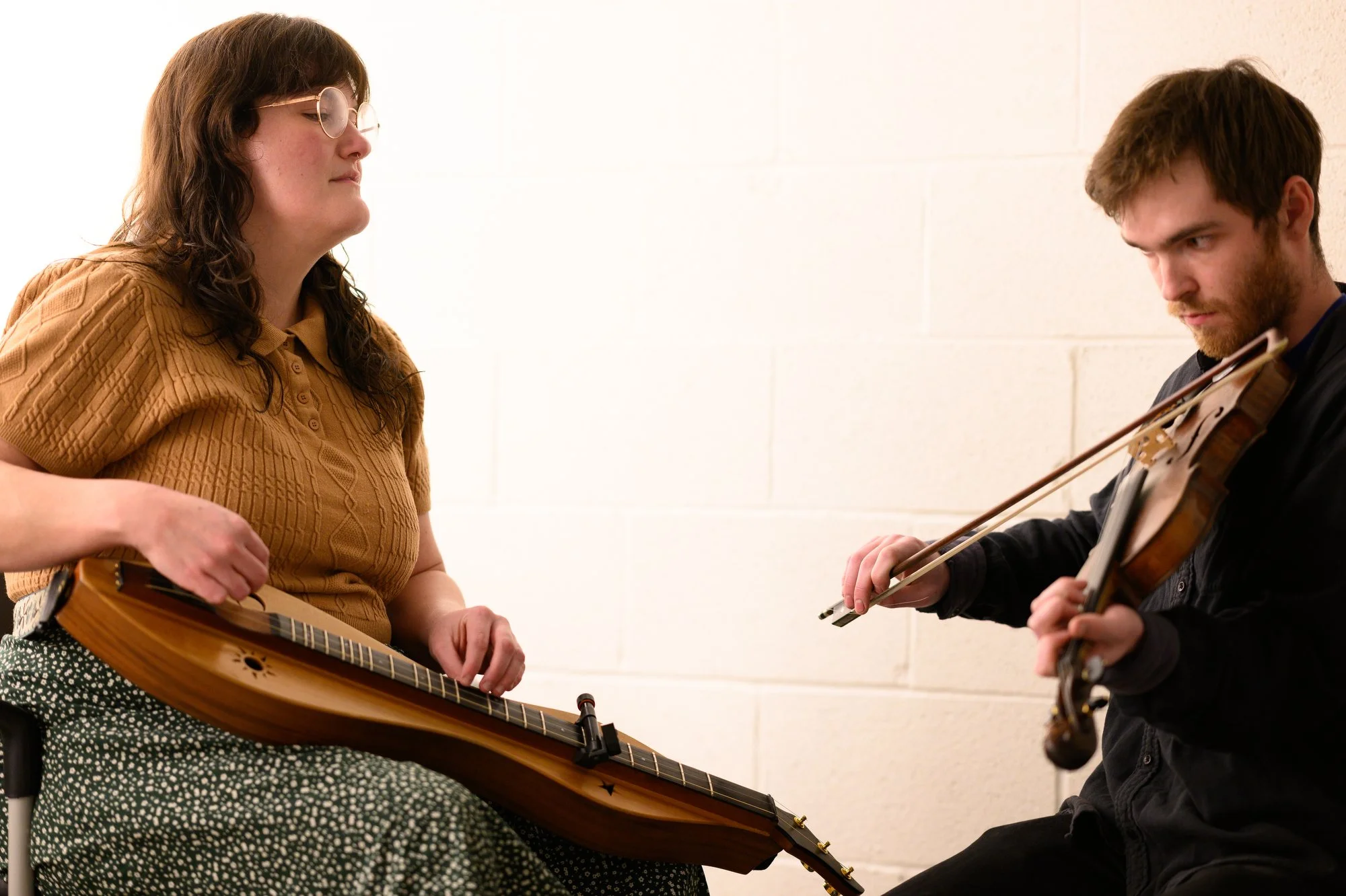 Mountain dulcimer player Sarah Kate Morgan & fiddler Leo Shannon are traditional musicians living and teaching in Eastern Kentucky. Leo learned to play fiddle as a boy from older musicians around him and friends his own age growing up in Seattle. Leo plays now with The Onlies, John Haywood, Rhys Jones, and others. Sarah Kate’s first dulcimer was built by her grandfather has been playing dulcimer since she was 7 years old and her songwriting honors life in southern Appalachia and reflects her experience growing up on a farm in East Tennessee. Back home in eastern Kentucky, Leo and Sarah Kate collaborate to organize the Pick & Bow program, a free music program that provides free lessons in traditional Appalachian music to over 80 students in the community.